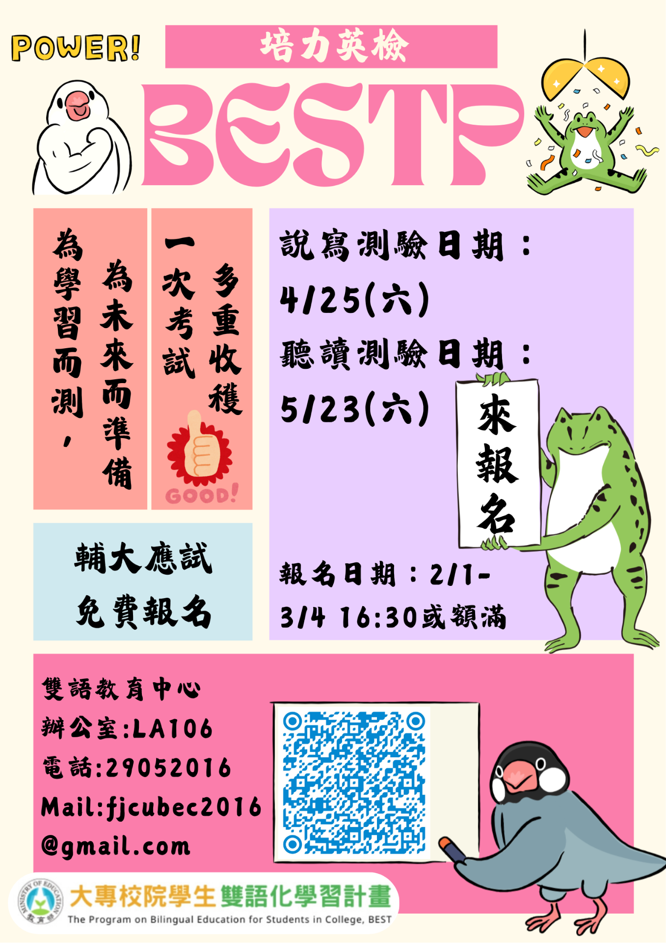 本校「培力英檢」將於 2月1日至3月4日 開放報名。