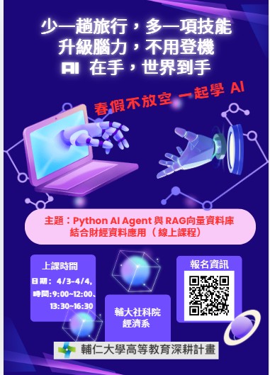 【社科院深耕計畫】Python AI Agent & RAG 向量資料庫結合財經應用線上課程