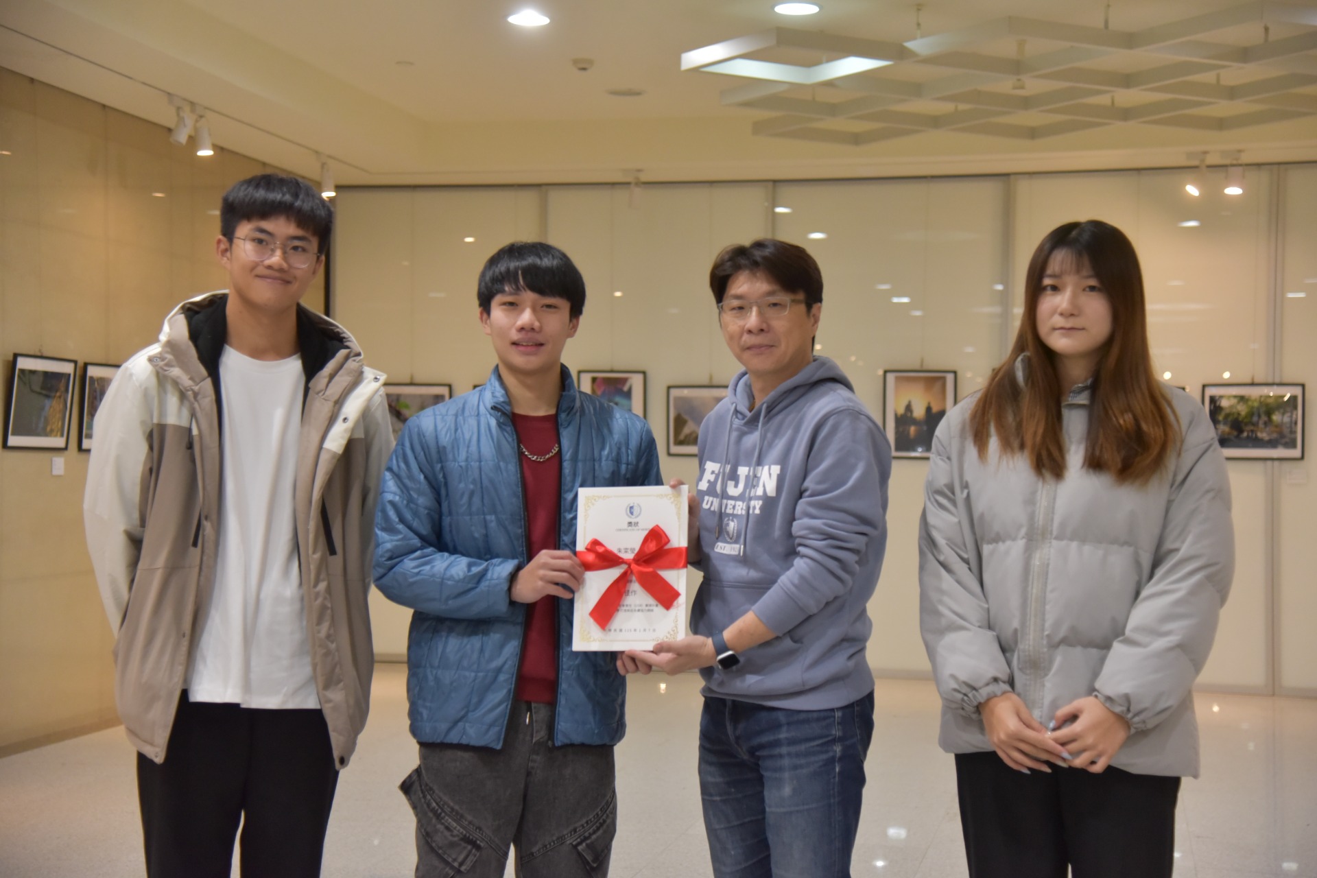 ➤新聞系鄧福慶以《那一刻,阿公倒下,新莊站起來》記錄新莊民眾冷靜協助跌倒老人的暖意。他提到:「世界不缺美,而是缺少停下來欣賞的時刻。」這句話讓現場掌聲不斷。